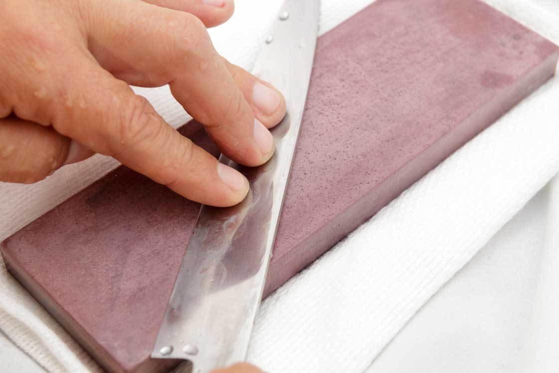 Στο ακόνισμα με μασάτι έχουν μεγάλη σημασία οι προσεκτικές κινήσεις, για τις οποίες χρειάζεται λίγη εξάσκηση. Το πρώτο πράγμα που προσέχουμε είναι η πίεση του μαχαιριού πάνω στο μασάτι, η οποία πρέπει να είναι μικρή, η ελάχιστη που νιώθουμε όταν ακονίζουμε την κόψη. Το δεύτερο είναι η κίνηση του μαχαιριού, που πρέπει να γίνεται έτσι ώστε με καθεμία να περνάνε από το μασάτι όλα τα σημεία της κόψης, από πάνω προς τα κάτω. Γι’ αυτό ιδανικά το μασάτι μας πρέπει να έχει μήκος τόσο όσο το μεγαλύτερο μαχαίρι μας. Το τρίτο σημείο προσοχής είναι η γωνία με την οποία ακουμπάει η λάμα πάνω στο μασάτι. Είναι απαραίτητο να ακολουθούμε τις οδηγίες του κατασκευαστή του μαχαιριού. Συνήθως στα ευρωπαϊκά μαχαίρια η γωνία ακονίσματος είναι στις 20 μοίρες, ενώ στα ιαπωνικά είναι στις 17, αν και υπάρχουν ειδικές κατασκευές με γωνίες κάτω από 10 μοίρες, οι οποίες απαιτούν άλλα ατσάλια. Ψάχνοντας, για παράδειγμα, στο YouTube, με τις λέξεις «ακόνισμα μαχαιριών», θα βρείτε αρκετά βίντεο που σας δείχνουν επακριβώς τις κινήσεις και θα καταλάβετε. Όπως πάντα, βέβαια, υπάρχουν πολλά βίντεο από άσχετους ή τρελαμένους, γι’ αυτό προτιμάτε βίντεο από εταιρείες μαχαιριών.